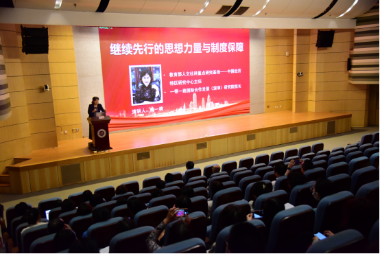 讲座中,陶一桃从“习近平总书记讲话及综合改革试点方案出台的意义”、“深圳经济特区成功经验”、“深圳经济特区新时代新使命作用机理的转化与提升”三个方面深刻阐述了习近平总书记出席深圳经济特区建立40周年庆祝大会和视察广东、深圳重要讲话重要指示精神实质和内涵。
