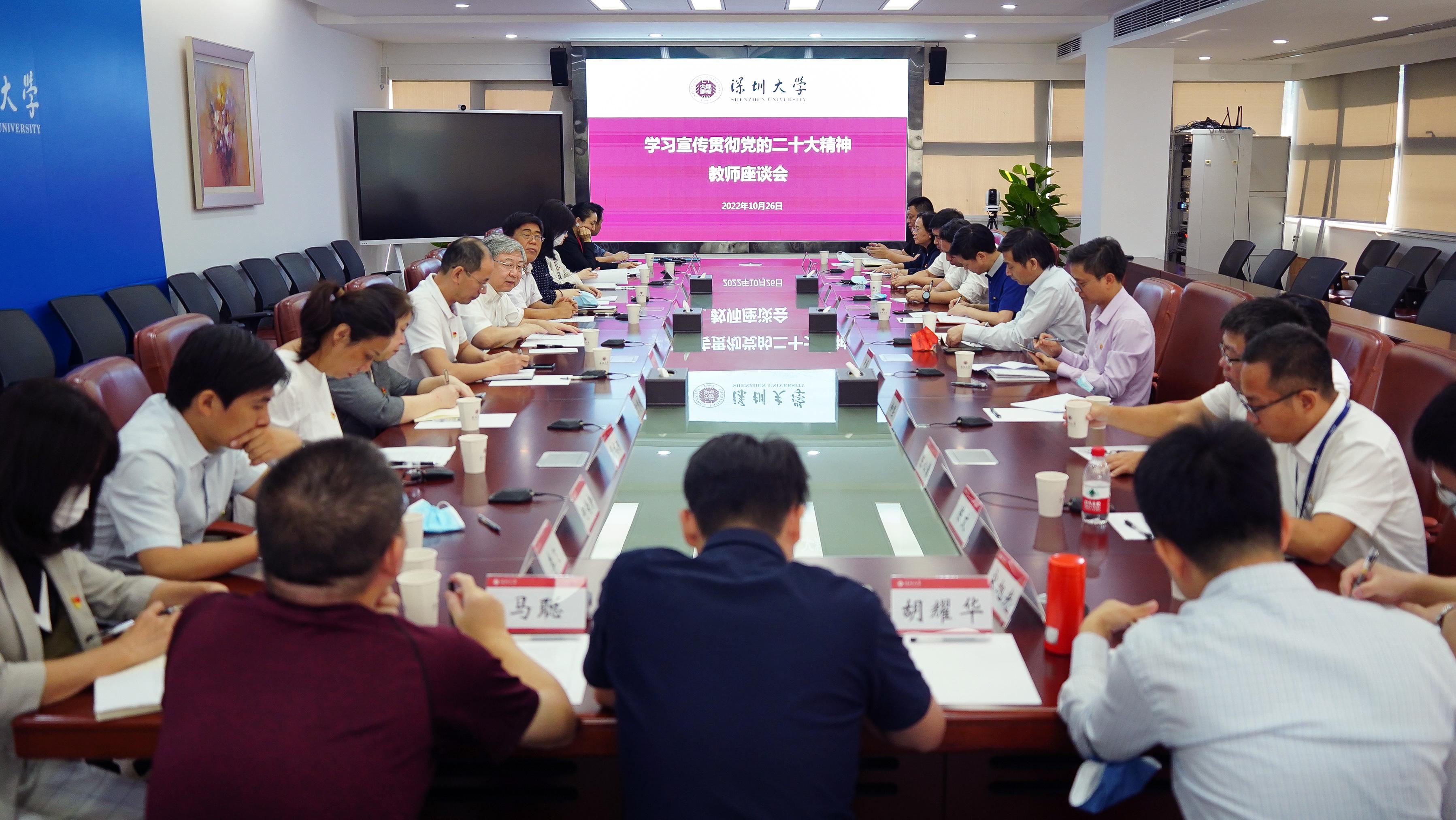 为学深悟透、集思广益,更好学习宣传贯彻落实好党的二十大精神,用党的二十大精神指引学校各项工作更好更快发展,10月26日上午,深圳大学组织召开学习贯彻党的二十大精神教师代表座谈会,20余位专家学者和教师代表结合各自工作实际、研究领域和学校发展,畅谈学习贯彻党的二十大精神的体会。学校党委书记李清泉,副校长汪永成以及党政办、组织部、宣传部、教师工作部、社科部相关负责人参加会议。
