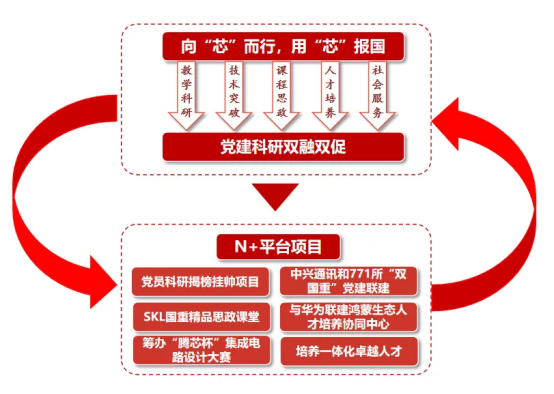 支部通过“1+5+1+N”党建工作机制,不断激发支部全体党员、实验室全员用“芯”报国的决心,赓续强国前行的科学家精神,打造新时代党建与科研事业深度融合示范高地。支部成员致力于解决芯片“卡脖子”问题,承担了教育部101计划(集成电路)项目建设,国家级项目104项、省部级项目67项等,科研到账经费近亿元,破解了多个关键技术难题,获授权专利238项。