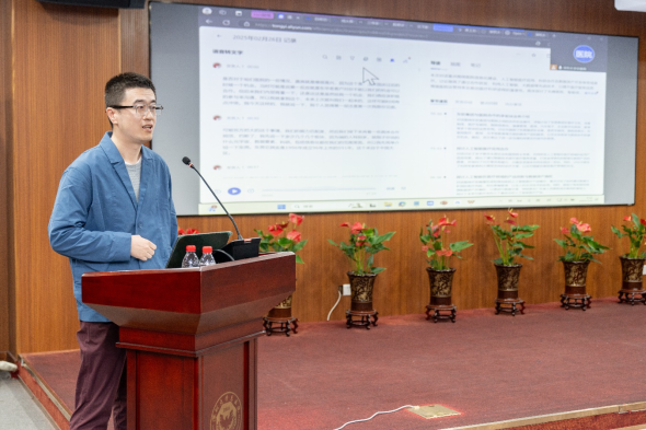 本次党课特邀信息技术部主任张啸担任主讲人。张啸以AI基础知识为切入点,深入浅出地阐述了DeepSeek等AI大模型的核心功能、技术优势,以及在医疗行业的广阔应用前景。他通过实际案例演示,生动展现了AI在公文写作、数据分析、财务报表等领域的卓越表现:在公文写作中,仅需输入关键信息,AI便能迅速生成逻辑清晰、格式规范的初稿,大幅节省写作时间;在数据分析方面,AI能够深度挖掘财务运营数据,为科学决策提供精准依据;在知识管理上,可高效整合医院各类知识资源,实现知识的快速检索与共享。此外,张啸还现场讲解了零基础人员如何打造专属AI智能体,为与会人员提供了极具实操性的指导。张啸在授课中谈到,AI技术不仅是未来医院管理和医疗服务的重要工具,更是提升行政职能部门管理人员核心竞争力的关键驱动力,他呼吁全体行政职能部门人员积极学习、主动应用AI技术,紧跟时代步伐,不断提升专业素养和综合能力,将AI思维融入管理全流程,以科技创新为引擎,助推医院服务全面升级,为医院高质量发展注入新动力。
