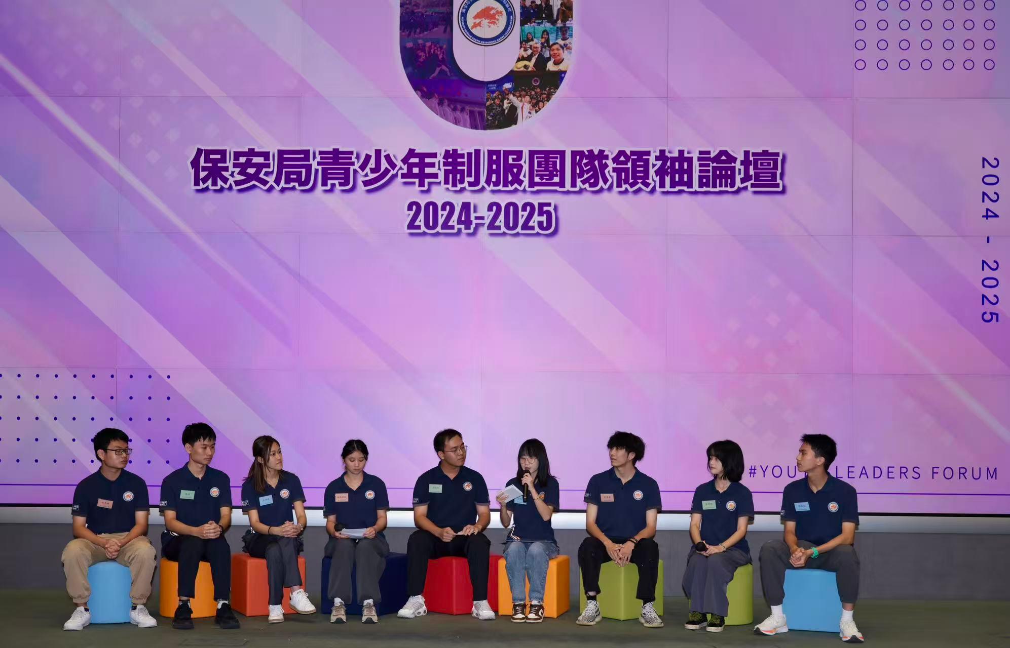 香港保安局青少年制服团队领袖论坛(以下简称领袖论坛)成立于2022年10月,每年从8支纪律及辅助部队的青少年制服团队当中甄选精英队员成为论坛学员,至今已举办三届。2023年11月,香港保安局与深圳大学签署合作备忘录,正式携手合作,推动深港青年发展及文化交流合作,深化领袖论坛培育青年的工作。2024年本届论坛进一步邀请澳门保安部队青年团加入,三地共同搭建粤港澳大湾区青年发展平台,促进不同背景青年之间的交流,强化三地青年的凝聚力。本届论坛的组成规模空前,汇聚了45名香港成员、30名深圳大学成员以及20名澳门成员。