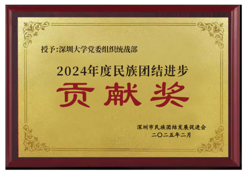 2025年3月,深圳大学党委组织统战部荣获市民族团结促进会授予的“2024年度民族团结进步贡献奖”!这一荣誉不仅是对我校民族团结进步工作的肯定,更是对全校师生共同努力的褒奖。