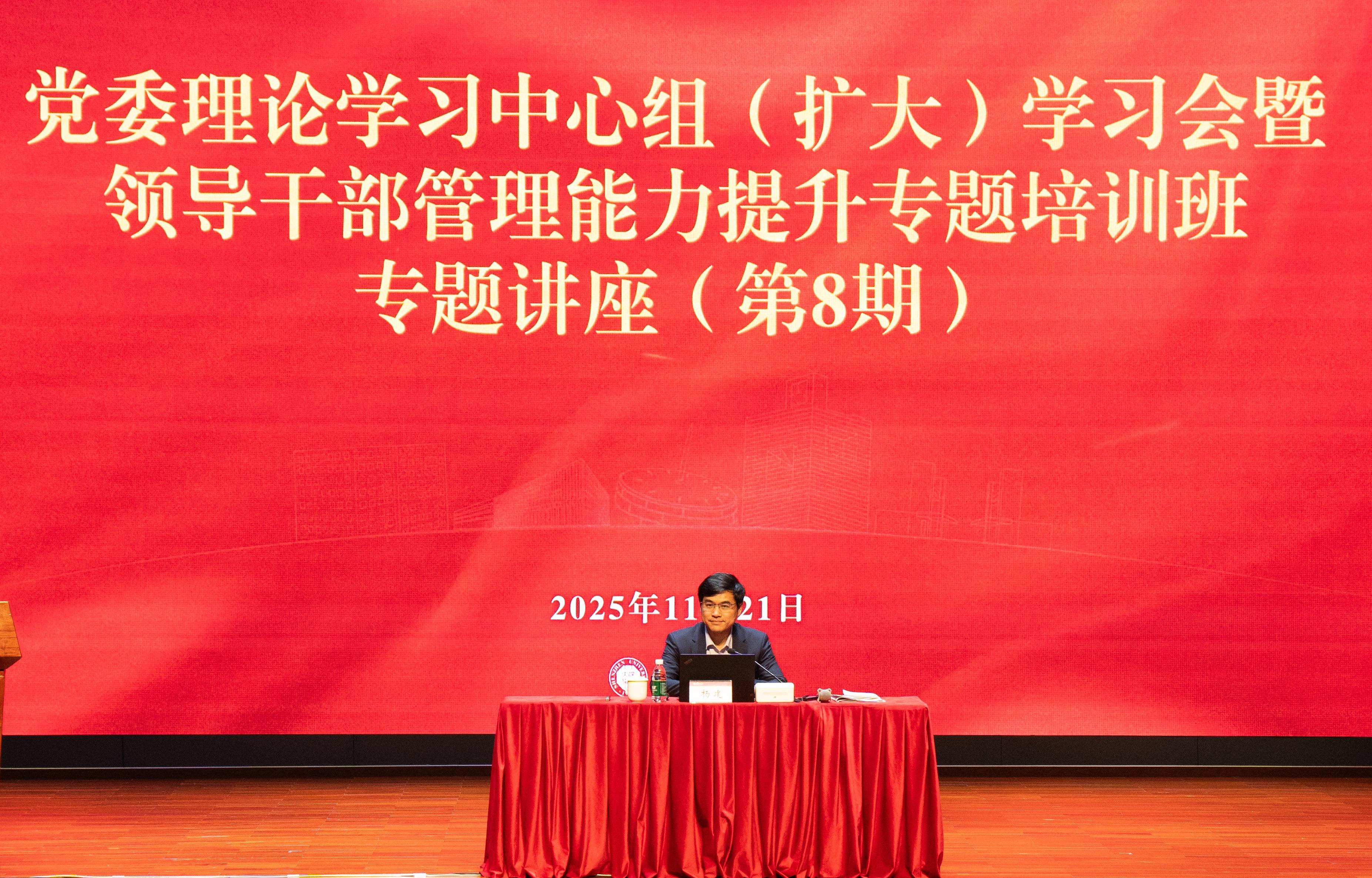 吴报水在总结讲话中表示,本次讲座内容翔实、逻辑严谨,案例丰富,既有政治高度,又有理论深度和视野宽度,为全校师生准确全面把握全会精神、进一步推动学校事业高质量发展提供了重要指导。他要求全校上下要深化思想认识,深刻理解“十五五”时期发展的指导思想、战略任务与学校发展的内在联系;要注重创新驱动,将全会关于高水平科技自立自强的要求作为学校改革发展的核心指引,真正将学校的学科优势、人才优势转化为赋能高质量发展的创新动能和现实成果;要强化作风建设,提升治理效能,不断提升管理服务的精细化、专业化水平,将学习成果转化为攻坚克难的担当精神,将全会精神切实转化为推动学校创新发展的实际行动。